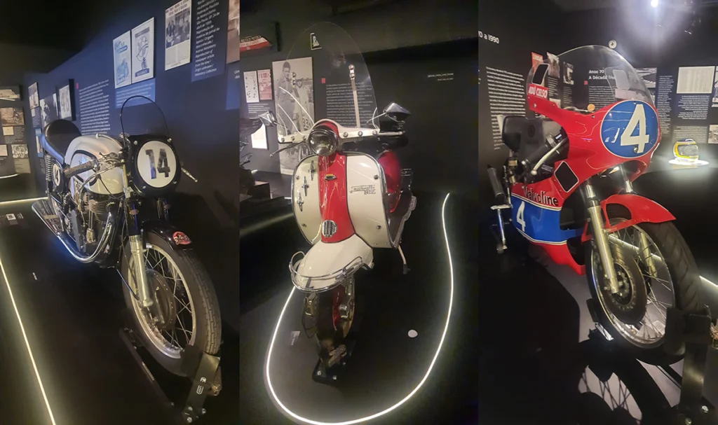 O acervo foi além das máquinas. A mostra apresentou também a evolução dos motores desde os a combustão até os elétricos, vestimentas de época, troféus, medalhas, registros de equipes, fotografias, vídeos e documentos históricos que contextualizam o papel do motociclismo no desenvolvimento social, esportivo e industrial do país.